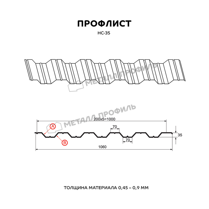 Универсальный и выгодный материал с одинаковым с обеих сторон профилем. Пометка НС значит, что профлист этот – и «несущий», и «стеновой». Он пользуется спросом как при строительстве частных домов, так и при возведении крупных объектов. Из профилированного листа с высотой волны в 35 мм создаются конструкции очень разного назначения: быстровозводимые сооружения ( павильоны, навесы ), каркасные здания ( торговые центры, цеха, склады ), обустройство кровли, ограждения частных и общественных территорий. Хорошую способность выдерживать нагрузки НС-35 придают специальные канавки, проходящие на лицевой и внутренней сторонах профлиста. Полезная ширина этого профиля составляет 1000 мм при полной ширине 1060 мм, то есть при монтаже этого профнастила в боковой замок скроется 60 мм. Толщина стали имеет диапазон от 0,5 до 0,9 мм – это обуславливает не только механическую стойкость стройматериала, но и его тяжесть. Полимерно-защитный слой из линейки Компани Металл Профиль придаст материалу улучшенную стойкость к ржавению и ультрафиолету.